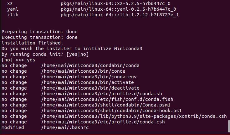 Now, we can install the MiniConda using the script for our current user.