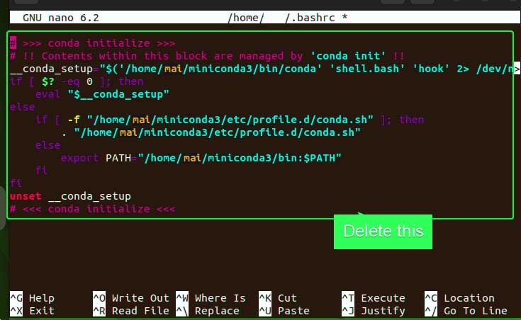 7. Uninstall or Remove Miniconda3 – Ubuntu 22.04