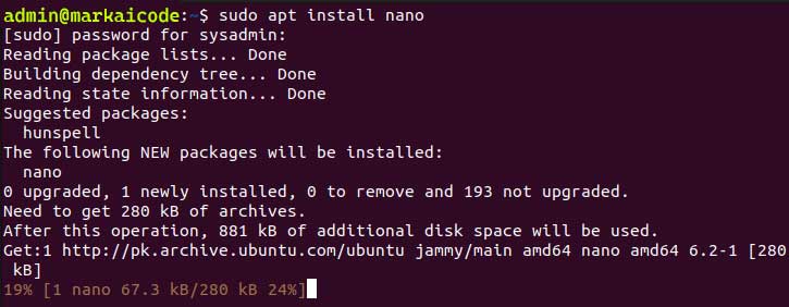 sudo apt install nano