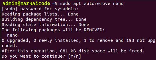 sudo apt autoremove nano