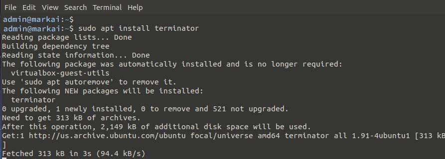 sudo apt install terminator