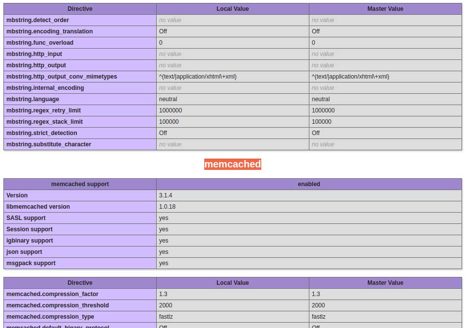 As you can see, Memcached support is enabled in PHP.