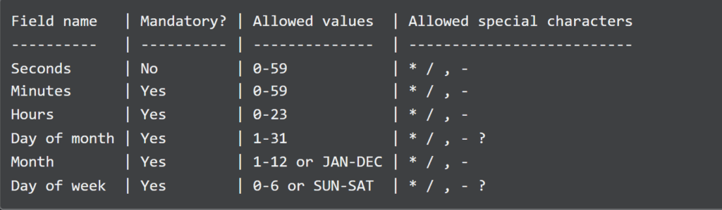 You can use various expression formats to define a set of times and durations under which a task will run.